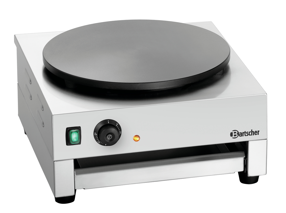 • Puissance : 3 kW | 230 V | 50/60 Hz• Témoin lumineux de contrôle : Chauffe - Marche/arrêt• Mode de fonctionnement : Électrique• Nombre de plaques à crêpes : 1• Matériau des plaques à crêpes : Fonte, avec revêtement en teflon• Diamètre des plaques à crêpes : 400 mm• Modèle de plaques à crêpes : Fixe• Plage de température : de 50 °C à 300 °C• Réglage de la température : Thermostatique - En continu• Commande : Manette• Interrupteur de marche/arrêt : Oui• Compris : 1 râteau• Matériau : Acier inoxydable• Remarque importante : -• Dimensions : L 450 x P 510 x H 245 mm