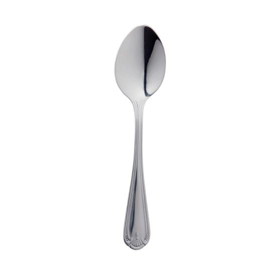 Cuillère à thé Olympia dotée d'une élégante bordure gravée avec un motif de coquillage. Les couverts de la gamme Jesmond sont conçus en acier inoxydable, robustes et facile d'entretien.