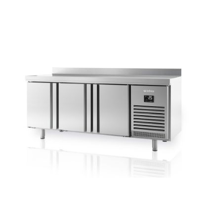 Cette desserte INFRICO de classification énergétique améliorée, grâce à l'utilisation du gaz réfrigérant R290, est destinée aux cuisines professionnelles. Elle est équipée de ventilateurs électroniques avec une circulation d'air optimisée qui garantissent une meilleure uniformité de la température à l'intérieur de l'enceinte. Avec son contrôleur numérique tactile et intuitif, la desserte réfrigérée offre une plus grande précision dans la maîtrise de la température afin de maintenir vos ingrédients frais. Son nouveau design de porte avec double poignée ajoutera une touche esthétique à votre cuisine.