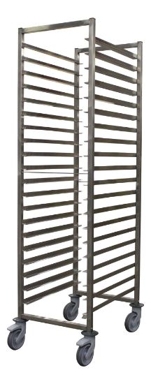 Echelle soudée avec 4 roulettes pivotantes chape polyamide dont 2 freinées. Elle dispose de 18 niveaux pour recevoir des grilles, des bacs gastro ou équivalents au format 600 x 400. Entrée: 400