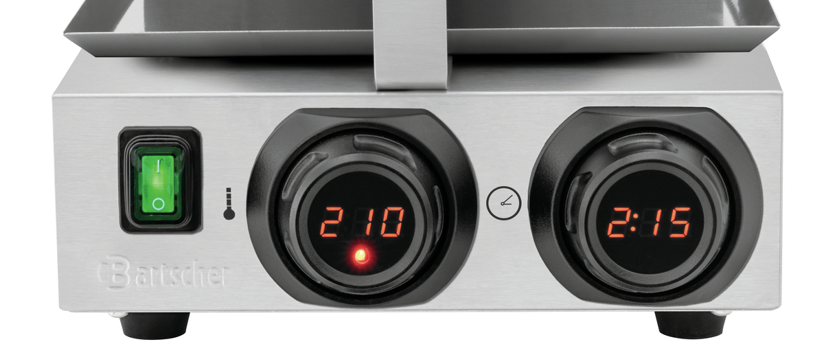 • Matériau : Acier inoxydable• Matériau des plaques : Aluminium, revêtue• Remarque importante : -• Nombre d'unités de cuisson : 1• Forme de gaufre : Gaufre de Bruxelles , ronde• Taille de gaufre : Ø 175 mm• Modèle de plaque(s) : Fixe• Plaques tournantes : Non• Plage de température : de 50 °C à 300 °C• Réglage de la température : Par incréments de 1 °C - Électronique• Programmation : -• Commande : Manette MDI• Affichage numérique : Oui• Minuterie : Oui• Degré de protection : IPX3