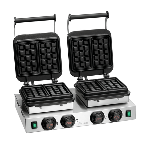 • Unités de cuisson réglables séparément : Oui• Matériau : Acier inoxydable• Matériau des plaques : Fonte, emaillé• Nombre d'unités de cuisson : 2• Remarque importante : 2 prises séparées sont nécessaires• Forme de gaufre : Gaufre de Bruxelles• Taille de gaufre : 160 x 100 mm, hauteur 32 mm• Modèle de plaque(s) : Fixe• Plaques tournantes : Non• Plage de température : de 50 °C à 300 °C• Réglage de la température : Électronique - Par incréments de 1 °C• Programmation : -• Commande : Manette MDI• Affichage numérique : Oui• Minuterie : Oui• Degré de protection : IPX