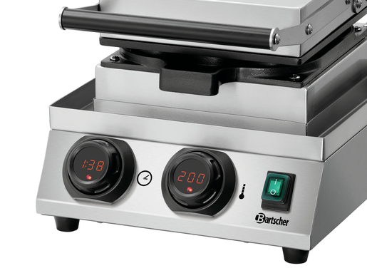 • Matériau : Acier inoxydable• Matériau des plaques : Aluminium, revêtue• Nombre d'unités de cuisson : 1• Remarque importante : -• Forme de gaufre : Donut• Taille de gaufre : Ø 50 mm, hauteur 20 mm• Modèle de plaque(s) : Fixe• Plaques tournantes : Non• Plage de température : de 50 °C à 300 °C• Réglage de la température : Électronique - Par incréments de 1 °C• Programmation : -• Commande : Manette MDI• Affichage numérique : Oui• Minuterie : Oui• Degré de protection : IPX3