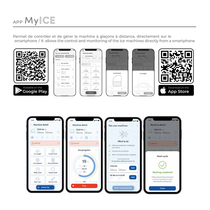 • Contrôle complet de la machine par Bluetooth ou Wi-Fi