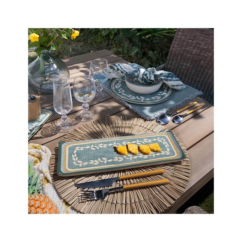 Plat rectangle Capria 33x12 cm en faïence vert- Lot de 12 - Novastyl